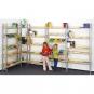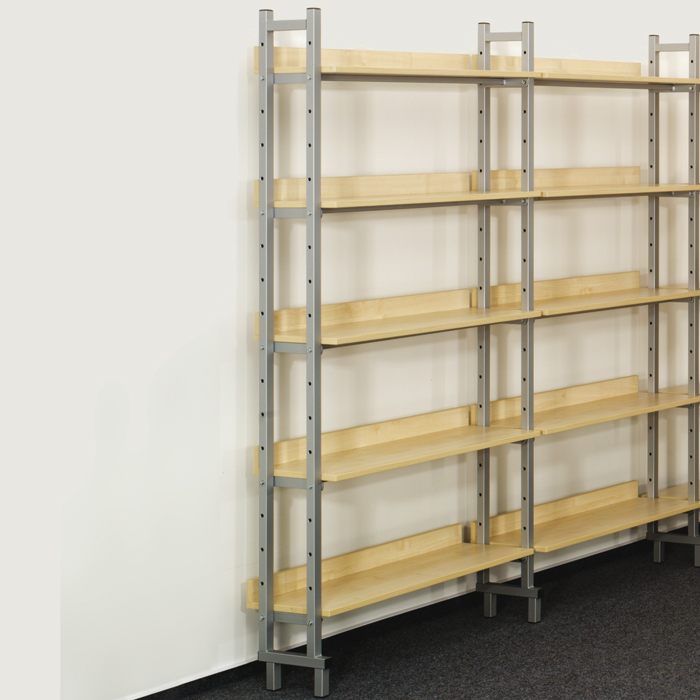 Die durchdachte Konstruktion verfügt über eine Stahlverstärkung unter jedem Brett. So lastet das hohe Papiergewicht auf dem Stahlrahmen und nicht auf den Brettern. Das Regal ist sehr stabil und ausgesprochen standfest. Mit diesem System sind Sie flexibel und nutzen Ihren Bücherraum perfekt aus! Stellen Sie sich Ihre Schulbibliothek nach den Anforderungen Ihrer Räumlichkeiten individuell zusammen.