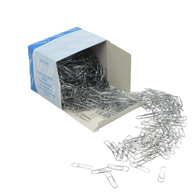 Ob Sie lose Blätter verbinden, Unterlagen sortieren oder schnell mal eine Notiz anheften möchten – Büroklammern sind einfach unverzichtbar. Die praktische Pappschachtel enthält 1000 stabile Büroklammern in silbriger Farbe. Die einzelnen Klammern sind 26 mm lang.