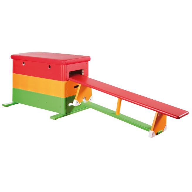 • dank Haltevorrichtung (Leiste) kombinierbar mit anderen Turngeräten, z. B. den bunten Mini-Sprungkästen, dem Sprungkasten Regenbogen oder dem Kletterwürfel