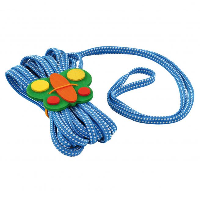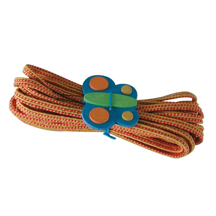 Das ideale Pausenspiel – preisgünstig und platzsparend. Der Holz-Schmetterling sorgt dafür, dass das Gummiband nach dem Spiel wieder ordentlich – ohne Knoten – aufbewahrt wird. Gummitwist farbig sortiert. Dehnbar bis ca. 8 m.