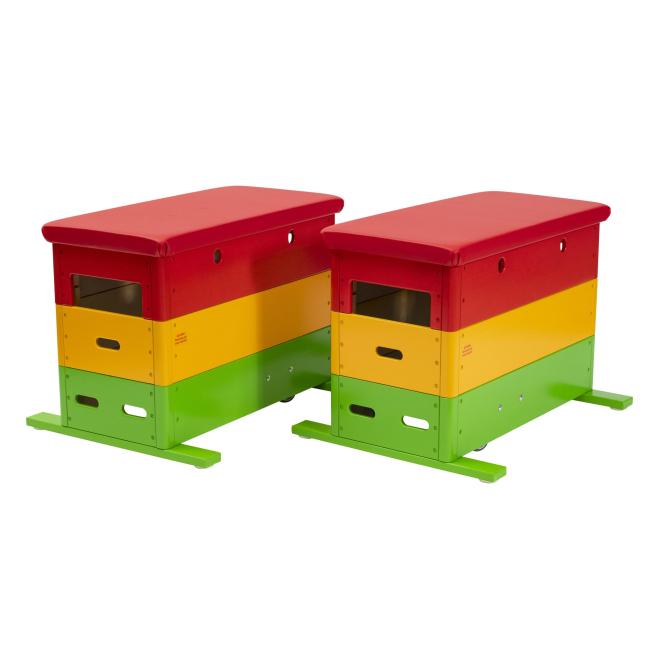 Das stabile und standsichere Mini-Sprungkasten-Set ist speziell für den Einsatz in Kindergarten und Grundschule entwickelt. Auch dank seiner abwechslungsreichen und fröhlich-bunten Gestaltung animiert es die Kids zum begeisterten Mitmachen und Ausprobieren. Gleichzeitig hilft die kindgerecht-freundliche Aufmachung der Turngeräte kleinen Sportlern dabei, erste Hemmungen abzubauen und Berührungsängste zu überwinden.