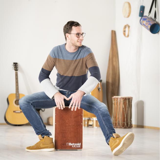 Hervorragende Klangqualität und Langlebigkeit zeichnen die hochwertige Cajon aus deutscher Produktion aus. Sie ist aus Birke gefertigt und muss nicht mehr gestimmt werden. Der zweigeteilte Snare-Teppich garantiert dauerhaft den typischen Schnarr-Effekt. Klare, starke Bass-Schläge sind zusätzlich möglich. Die aufgeraute Sitzfläche und Spezialfüße aus gummiertem Filz sorgen für sicheren Halt. Denn gespielt wird das Instrument im Sitzen, indem mit den Händen auf verschiedene Weisen gegen die Frontplatte getrommelt wird.