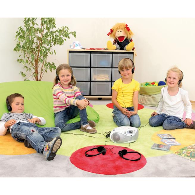 Der leistungsstarke CD-Player eignet sich ideal für Hör- und Singvergnügen in großen Räumen. Mit 6 Kopfhöreranschlüssen genießt eine Gruppe bis zu 6 Kindern gleichzeitig Musik oder Geschichten, während Sie sich den anderen widmen. Im Batterie-Betrieb ist der CD-Player überall schnell einsatzbereit.