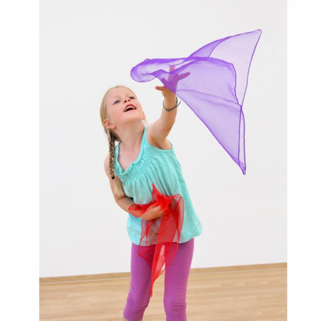 Diese luftig leichten Chiffontücher eignen sich bestens, um die Musik in Bewegung umzusetzen: Durch Schwingen und Tanzen mit den Tüchern werden Takt, Rhythmus und Melodie mit dem ganzen Körper wahrgenommen. Musik wird freudvoll erlebt.