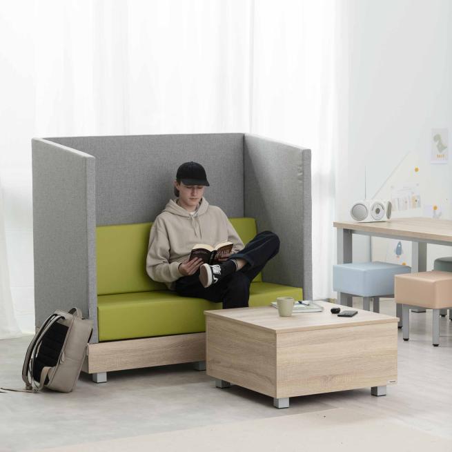 Das Schallschutzsofa aus der Möbelserie Chillo bietet den optimalen Rückzugsort auch in belebteren Bereichen Ihrer Einrichtung. Die hohen Lehnen minimieren den Schall aus der Umgebung. Wer im Schallschutzsofa sitzt, genießt die gedämpftere Atmosphäre und kommt zur Ruhe. Das Schallschutzsofa kombinieren Sie optimal mit allen Chillo-Modulen. Kreieren Sie individuelle Wohlfühlorte mit der Möbelserie. Das Schallschutzsofa ist fertig montiert.