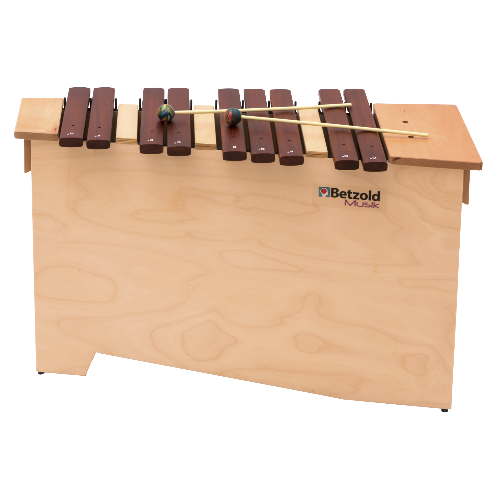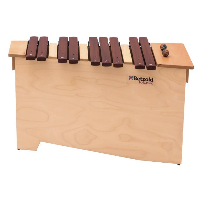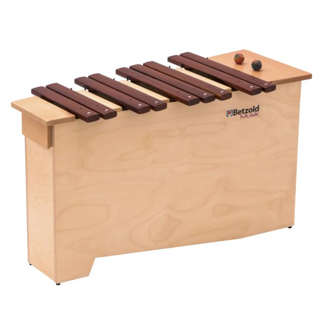 4 einzelnen Kammern im Resonanzkasten aus Ahornholz gewährleisten einen ausgezeichneten Klang. Zusätzlich sind die einzelnen Klangstäbe gewölbt und ermöglichen damit ein Darüberstreichen über das gesamte Instrument. Dieser Streich-Effekt lässt die komplette Klangfarbe des Xylophons erklingen.