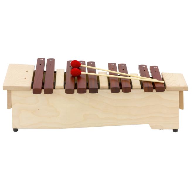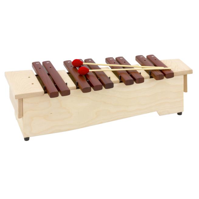 Erweitern Sie Ihr Sopran-Xylophon mit dieser chromatischen Ergänzung um 9 Halbtöne. Seine Klangstäbe bestehen aus Rosewood (Palisander) und die 4 einzelnen Kammern im Resonanzkasten aus Ahornholz gewährleisten einen ausgezeichneten Klang. Zusätzlich sind die einzelnen Klangstäbe gewölbt und ermöglichen damit ein Darüberstreichen über das gesamte Instrument. Dieser Streich-Effekt lässt die komplette Klangfarbe des Xylophons erklingen.