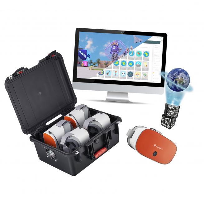 Die ClassVR Premium Headset samt Hand-Controllern sind in einem speziellen Hardcase verstaut. Es bietet die optimale Lagerungsmöglichkeit, hilft beim leichten Transportieren und lädt die Headsets über nur einen einzigen Wandstecker auf.ClassVR Cube