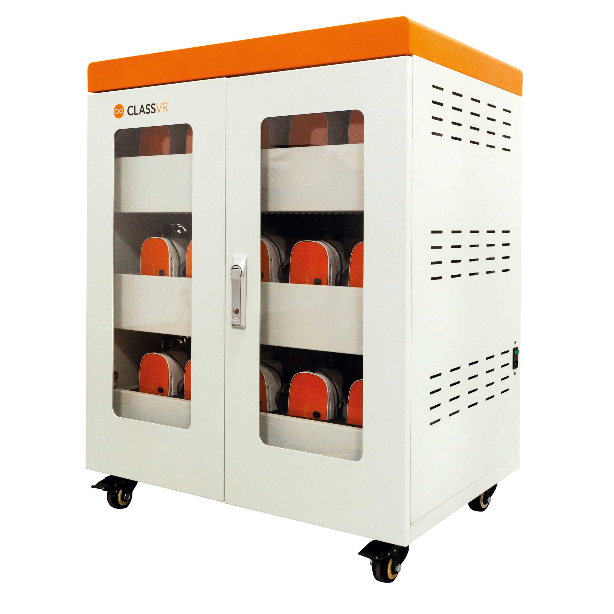 Hier erhalten Sie gleich einen ganzen Klassensatz der brillanten ClassVR-Xplorer-Headsets inklusive Controllern, komplett im robusten Transport- und Ladewagen. Das Schrankmobil ist abschließbar und bietet so allseits ausgezeichneten Schutz. Noch dazu nutzen Sie den Wagen, um alle Headsets und Hand-Controller gleichzeitig aufzuladen. So machen Sie Ihre ClassVR-Ausrüstung nach jedem Einsatz direkt wieder startklar für die nächste Unterrichtsstunde. Die 4 stabilen Rollen des Transportwagens sind feststellbar. Wagen inklusive Beleuchtung und Belüftungsöffnungen. Die Auslieferung erfolgt zusammen mit einer verständlichen Bedienungsanleitung.