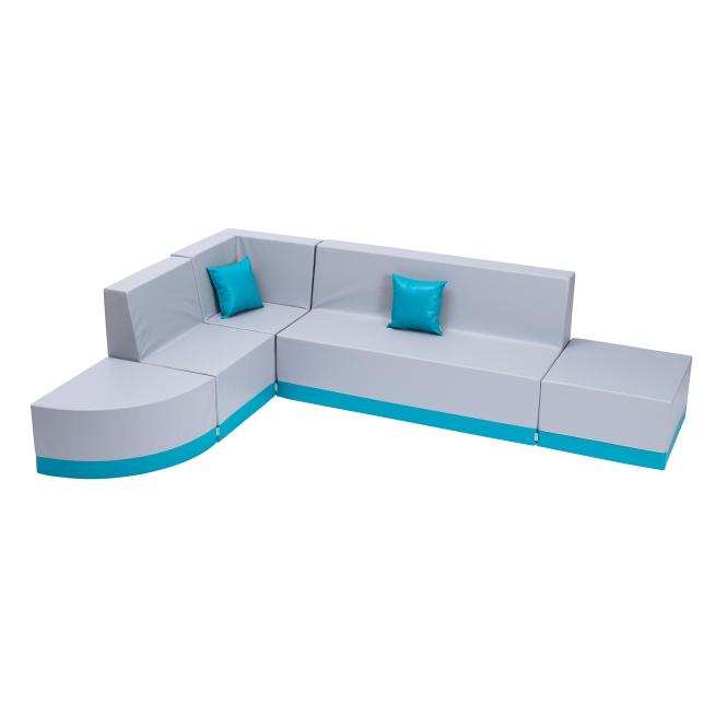 Die praktischen Baustein-Elemente der Clubbo-XXL-Serie passen Sie in bedarfsgerechten Kombinationen jeder Raumsituation an. So kreieren Sie auch auf kleinen Flächen bequeme Lese- und Sitzecken, z. B. in Pausen- und Gemeinschaftsräumen. Gestalten Sie beispielsweise durchgehende Sitzreihen aus Hocker- und Bank-Elementen oder Kombinationen mit dem Sofa. Mithilfe der platzsparenden Ecke auf quadratischer Grundfläche (73 x 73 cm) oder dem abgerundeten Viertelkreis-Hocker füllen Sie Raumecken. Die Hocker-Elemente eignen sich zugleich als Tische und lassen sich mit der Kuschelrolle ergänzen. Die jeweilige Sitzhöhe der gesamten Serie ist ideal für Kinder im Grundschulalter.