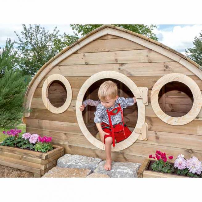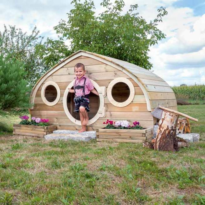 Lauter kleine Elfen und Kobolde wohnen in Ihrem Garten. Das wunderschöne Spielhaus lädt ein zu fantasievollen Abenteuern und magischen Traumreisen. Die rund geschwungenen Formen wirken beruhigend und entspannend. Ein zauberhafter Rückzugsort zum Spielen, Lesen, Verstecken und Ausruhen.
