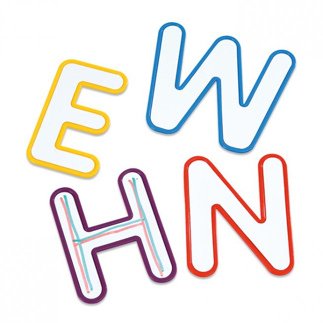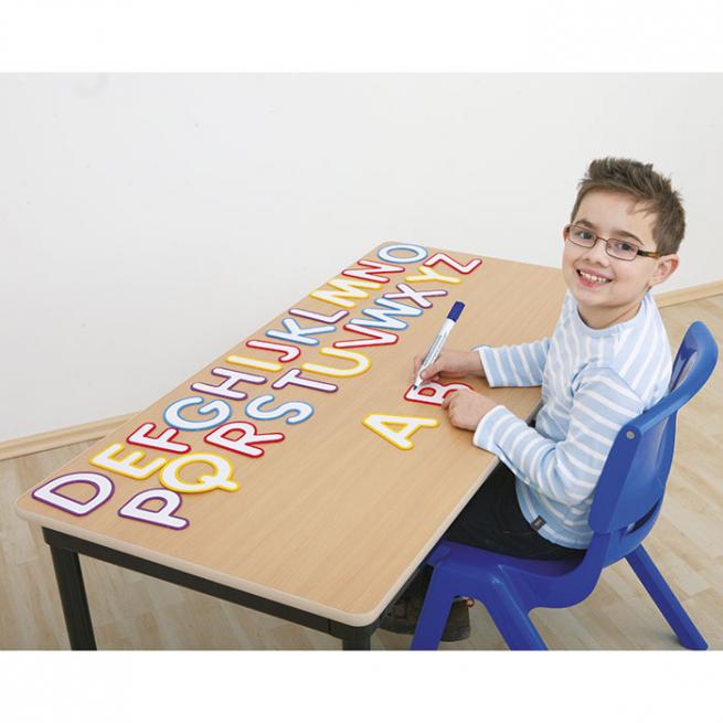 26 beschreibbare Großbuchstaben mit farbigen Kunststoffrahmen, ca. 11,5 cm hoch