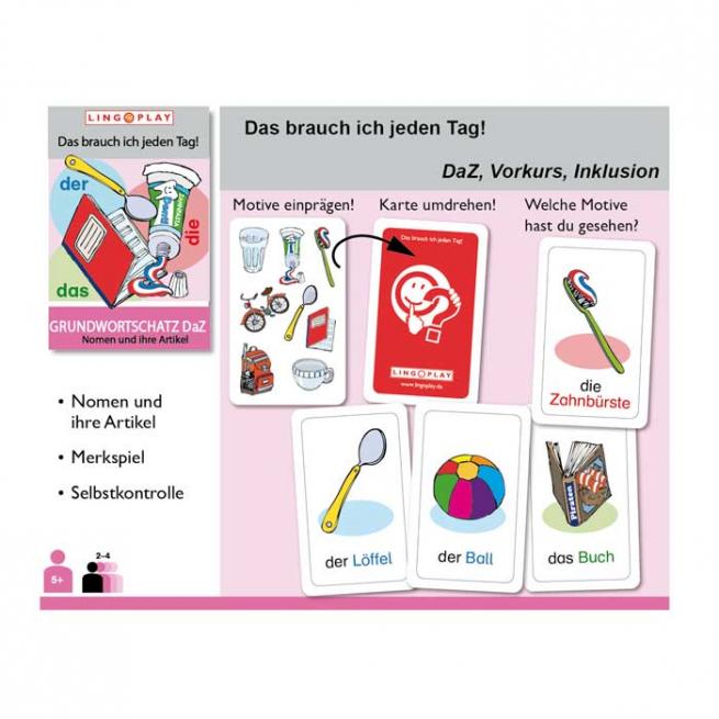 Mit diesem Lernspiel werden häufig gebrauchte Nomen und ihre Artikel auf spaßige Weise vermittelt.