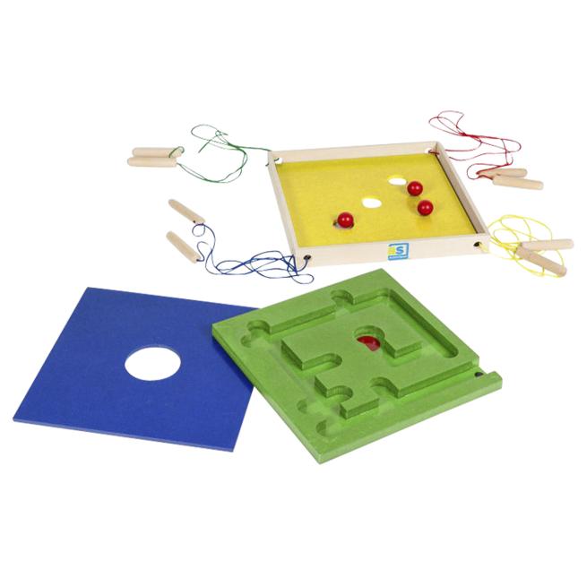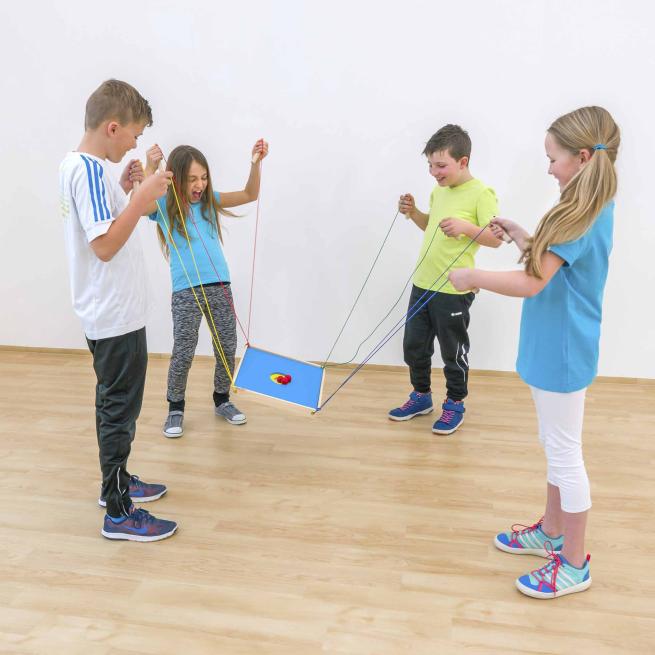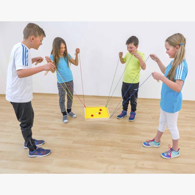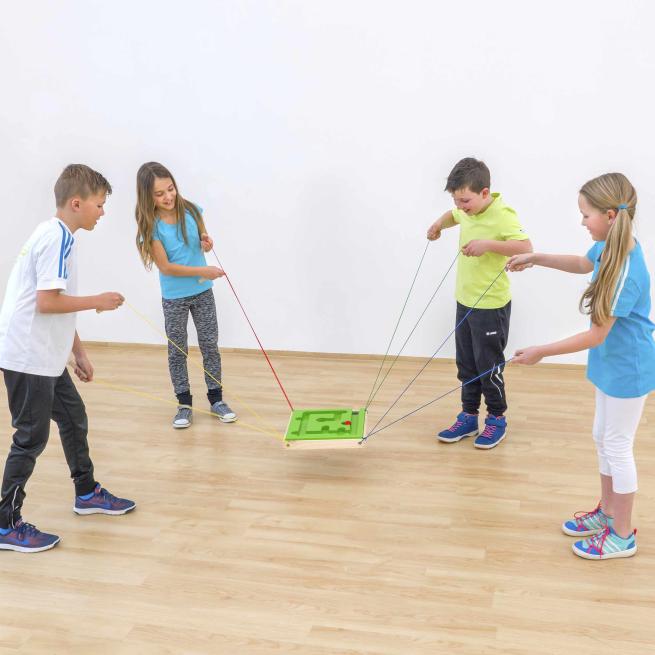 Mit Konzentration und Geduld lenken die Spieler jede Kugel an die richtige Stelle. Das klappt, wenn alle perfekt zusammenwirken – als Team. Das Spielbrett aus Holz wird von vier oder acht Kindern gemeinsam koordiniert. Drei verschiedene Spielbretter sorgen für abwechslungsreichen Spielspaß.