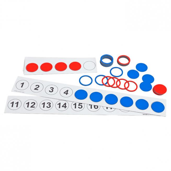 Mit den magnetischen Zahlenreihen, Wendeplättchen und -ringen veranschaulichen Sie den Zahlenraum bis 20. Rechnen lernen, Zehnerübergang oder das Zerlegen von Zahlen in Mengen, fällt Ihren SuS somit leichter.