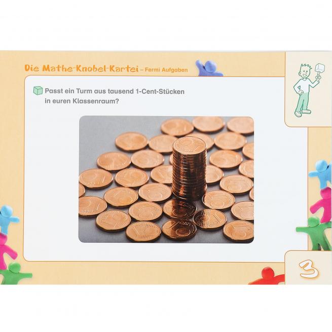 Wecken Sie die Freude an der Mathematik bei Ihren Schülern. Interessante und lustige Schätzfragen regen zum Knobeln und Diskutieren an. Bei den Fermi-Aufgaben in drei Schwierigkeitsstufen kommt es weniger auf eindeutige Lösungen an – hier ist Schätzen, Überschlagen und Kombinieren gefragt. Mit Kreativität, Kooperation und Kommunikation entwickeln Ihre Schüler eigenständige Lösungswege. Die Kinder lernen, sinnvoll zu argumentieren und Antworten zu begründen. Auf den Rückseiten der robusten Karten gibt es Lösungshilfen zur Ergebnisannäherung.