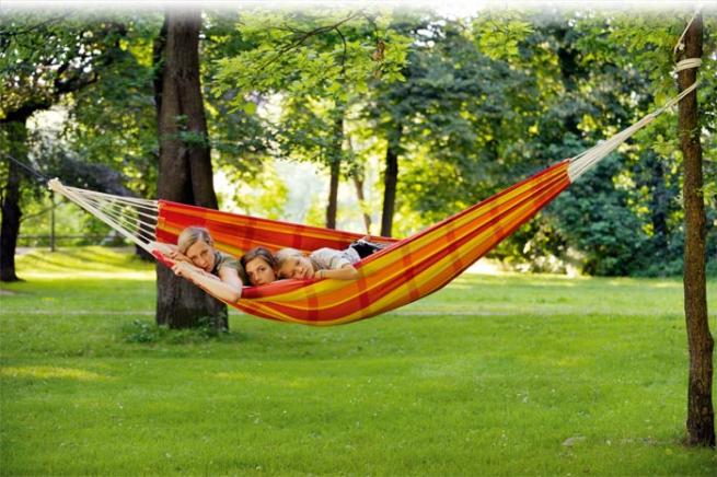 Diese farbenfrohen Hängematten sind besonders breit. Daher bieten sie viel Platz. Auch für mehrere Kinder zum Träumen und Entspannen. Eine gern benutzte Rückzugsmöglichkeit.