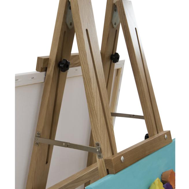 Hier können 2 Personen gleichzeitig arbeiten. Einfach zu verstellen und platzsparend zu verstauen. Aus Eiche.