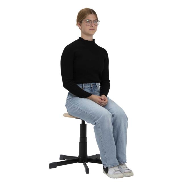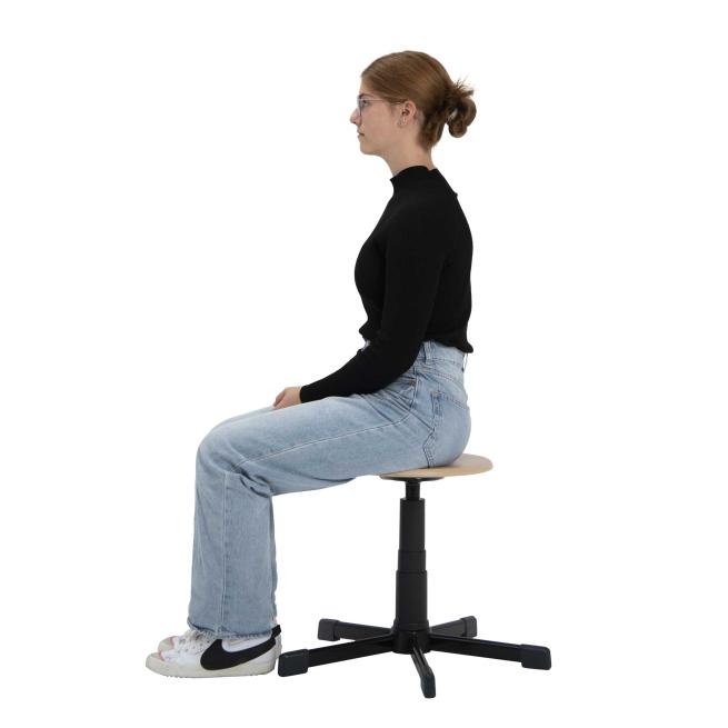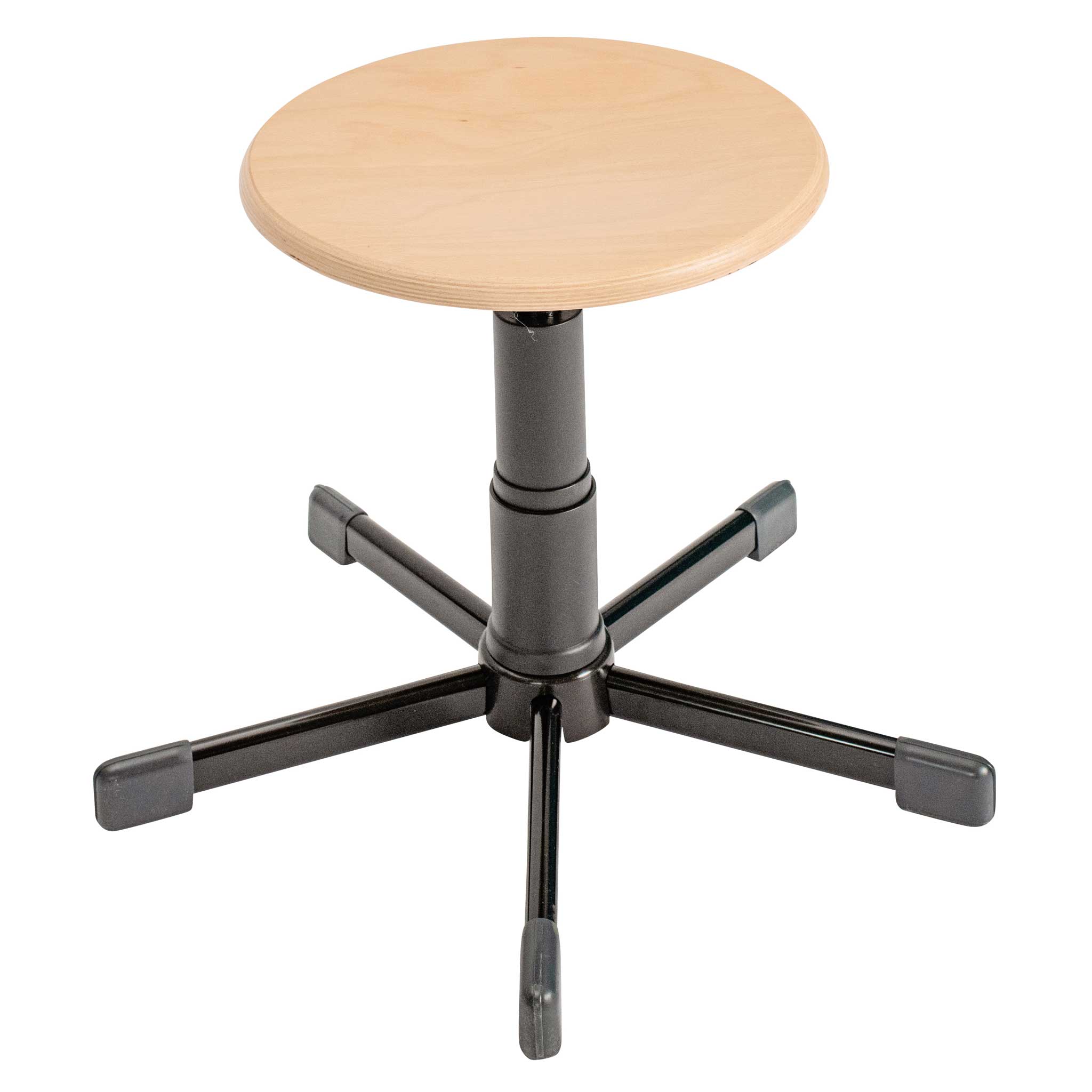 Sitzhöhenverstellung durch Gaslift oder Drehspindel. Lieferbar in Buchensperrholz natur lackiert. Stabiles schwarzes Fußkreuz mit Kunststoff. oder Filzgleitern.