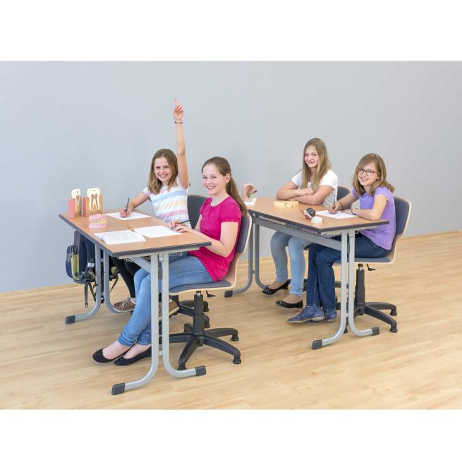 Bequeme Sitzschale in Buche natur, die Höhenverstellung erfolgt mit Drehspindel oder Gaslift.