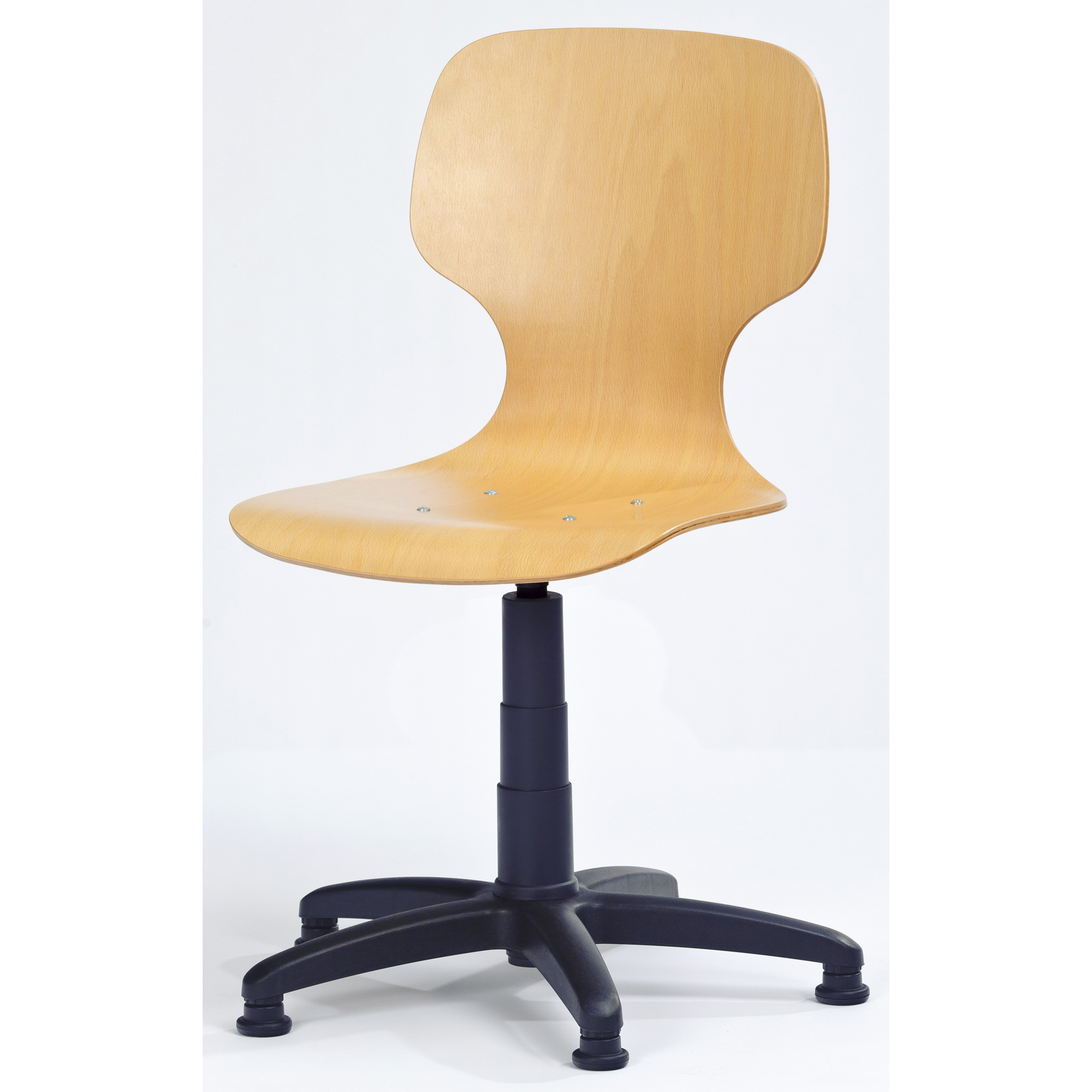 Bequeme Sitzschale in Buche natur, die Höhenverstellung erfolgt mit Drehspindel oder Gaslift.