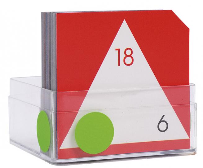 Mithilfe der Dreieck 1x1 Trainingskärtchen lernen Ihre Schülerinnen und Schüler das Einmaleins mal von einer anderen Seite kennen. Hier beschäftigen sie sich mit dem Produkt und dessen Faktoren. Auf den Kärtchen steht das Produkt oben im Dreieck. In den unteren Ecken steht links der kleine und rechts der große Faktor. Die grünen Punkte auf der Box verdecken einen oder beide Faktoren. Auf einer Box-Seite ist der Punkt links, auf der anderen rechts und auf der nächsten decken 2 grüne Punkte beide Faktoren ab. Welche Zahl(en) sind gesucht? Ihre Schüler kontrollieren sich selbst, nachdem sie die Lösung errechnet haben.