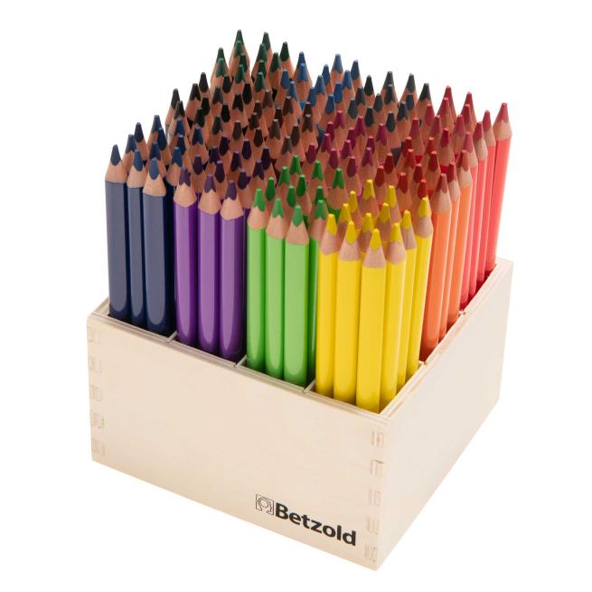 Dreikantstifte, 144 Farbstifte im hohen Holzkasten