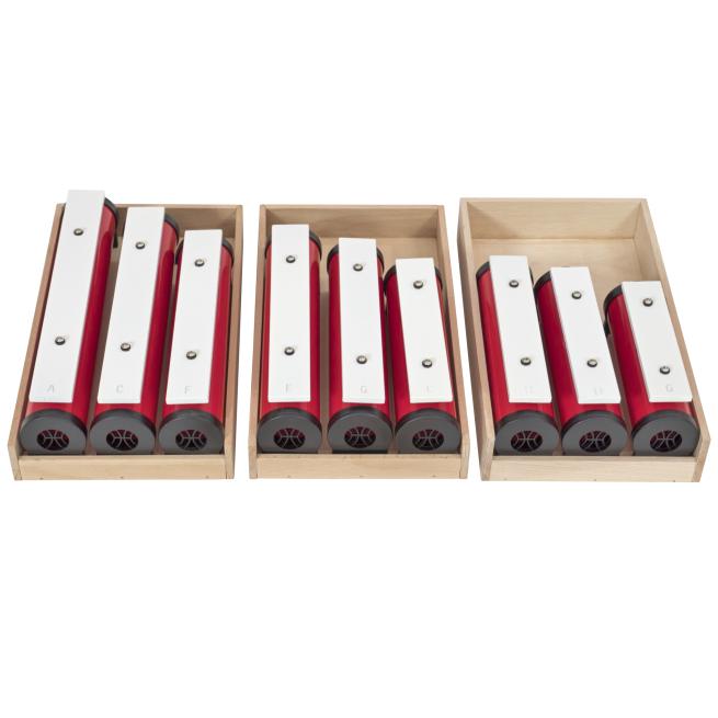 12 Round-Sound-Tubes bilden die Akkorde C-Dur, G-Dur, D-Dur, A-Dur, F-Dur, d-Moll, g-Moll (Töne: 1x g1, 1x b1, 1x h1, 2x c², 2x d², 1x e², 1x f², 1x fis², 1x g², 1x a²)