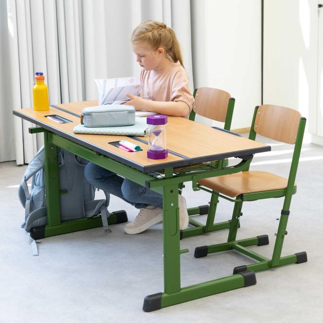 Stabil gebaute Tische und Stühle, die dem Schulalltag standhalten.