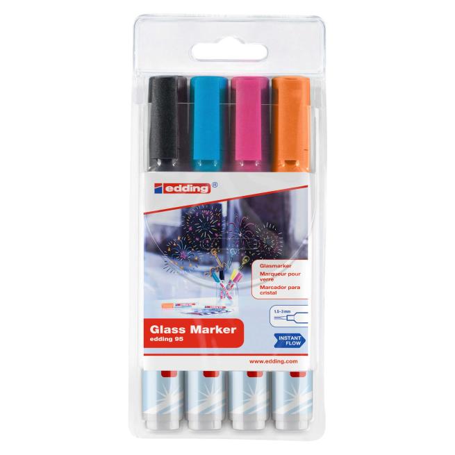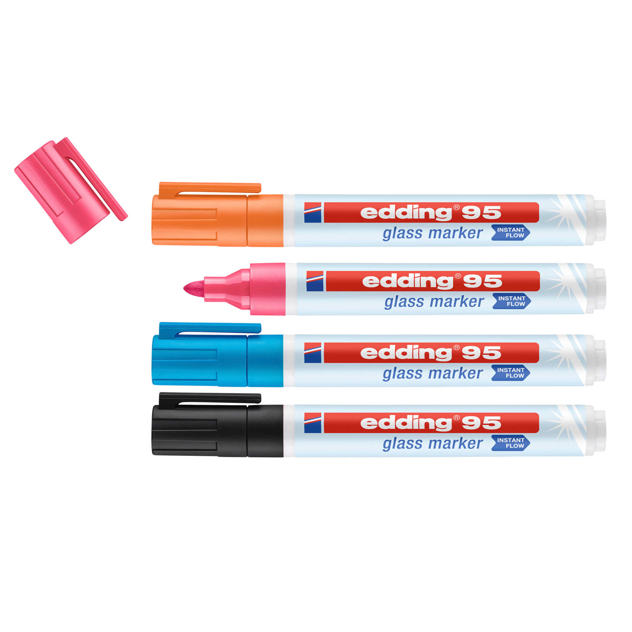 4 Glasmarker, je 1 Stift in Schwarz, Orange, Pink, BlauProduktdetails