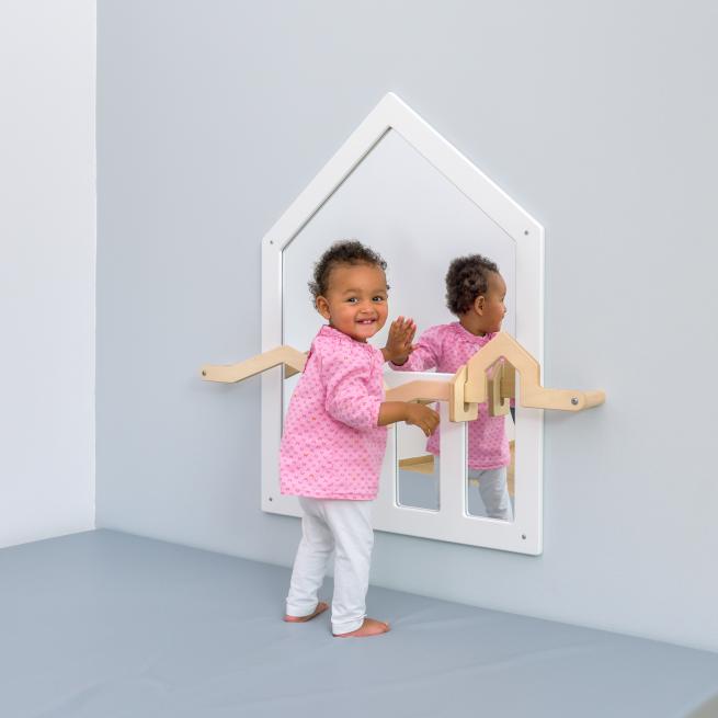 Aufstehen, festhalten, erste Schritte allein unternehmen – die Lauflernstange ist ein echter Helfer für die Kleinsten. Für zusätzliche Motivation sorgt das kleine Häuschen, das die Kinder bei jedem Schritt ein Stückchen weiterschieben können. Ohne Wandmontagematerial.