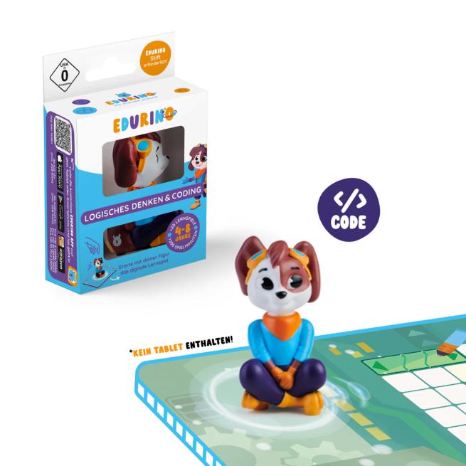 Digitales Lernen zum Anfassen. In der Welt von EDURINO entdecken Kinder mithilfe von Eingabestift (nicht enthalten), Spielfigur und App, wie spielend leicht logisches Denken und Coden funktionieren.