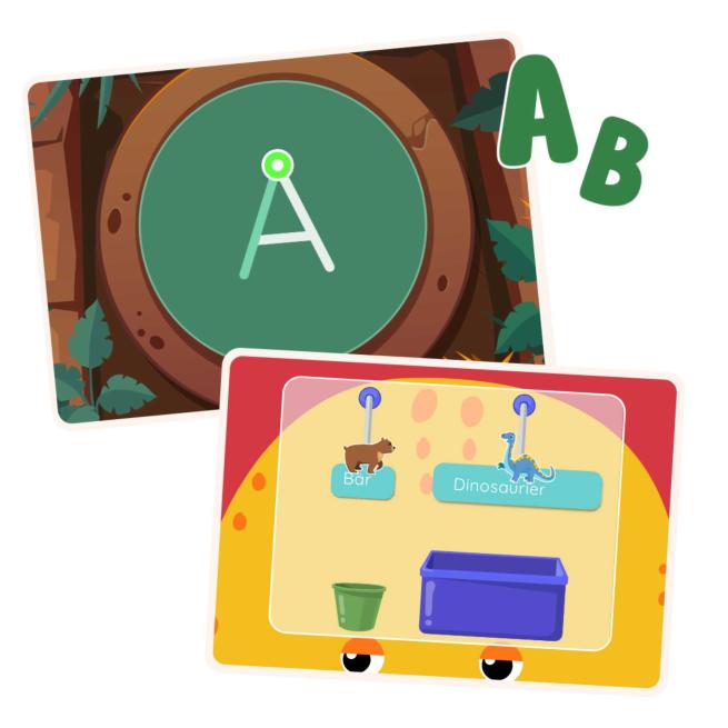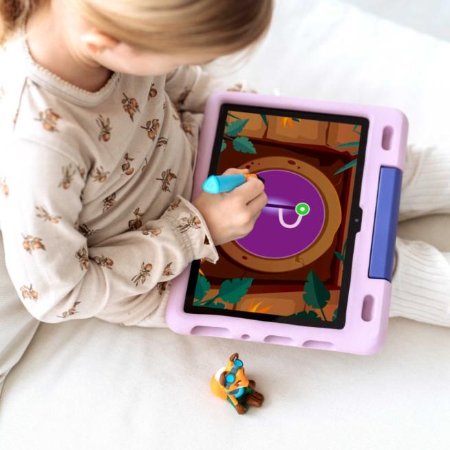 Die EDURINO Lern-App laden Sie kostenlos aus den gängigen Stores herunter. Sobald das Kind die schlaue Spielfigur Füchsin Mika auf das Endgerät stellt, erkennt die App diese und startet das entsprechende Lernspiel. Gemeinsam mit Mika beginnt die spannende Reise in die Welt der Worte. Spielerisch lernen Kinder die Grundkompetenzen fürs Lesen und Schreiben. Dabei sind z. B. Vorschul- und Schwungübungen in spannende Missionen eingebettet. Mithilfe des Eingabestifts bedienen die Kinder die App und die Übungen darin. Gleichzeitig trainieren sie die korrekte Stifthaltung. Eingabestift und Lerninhalte sind mit Ergotherapeuten und Pädagogen entwickelt worden. Ab 4 Jahren.