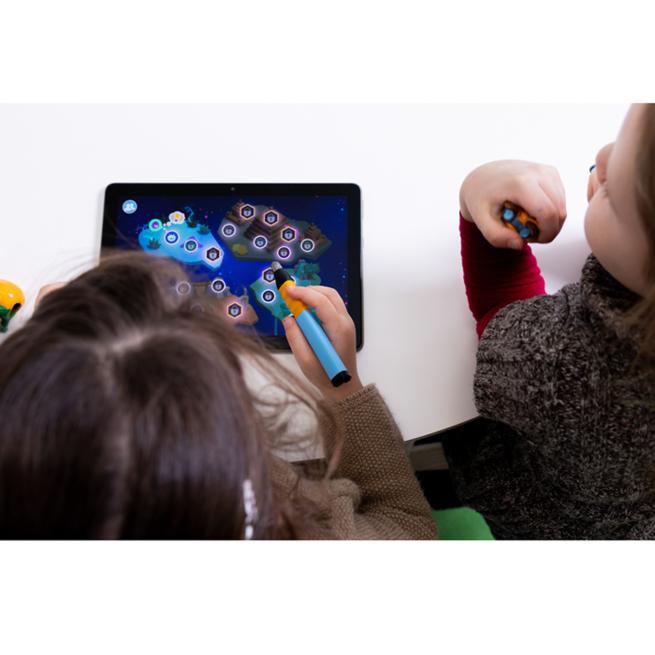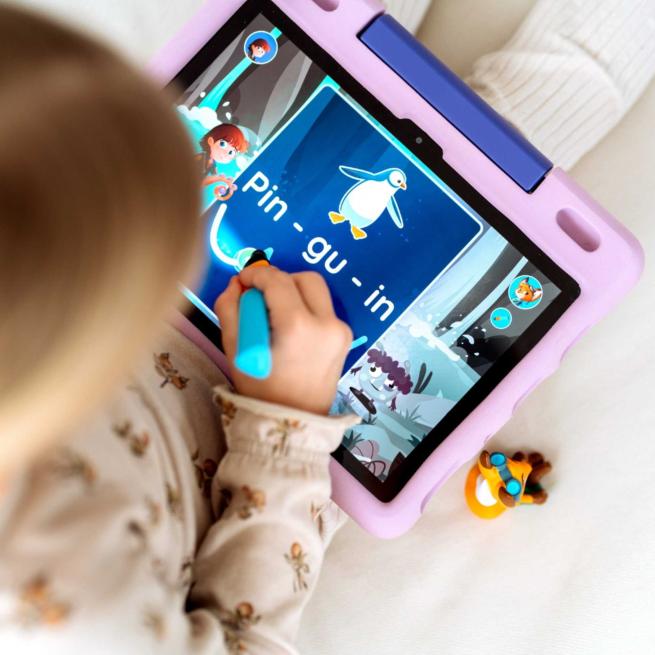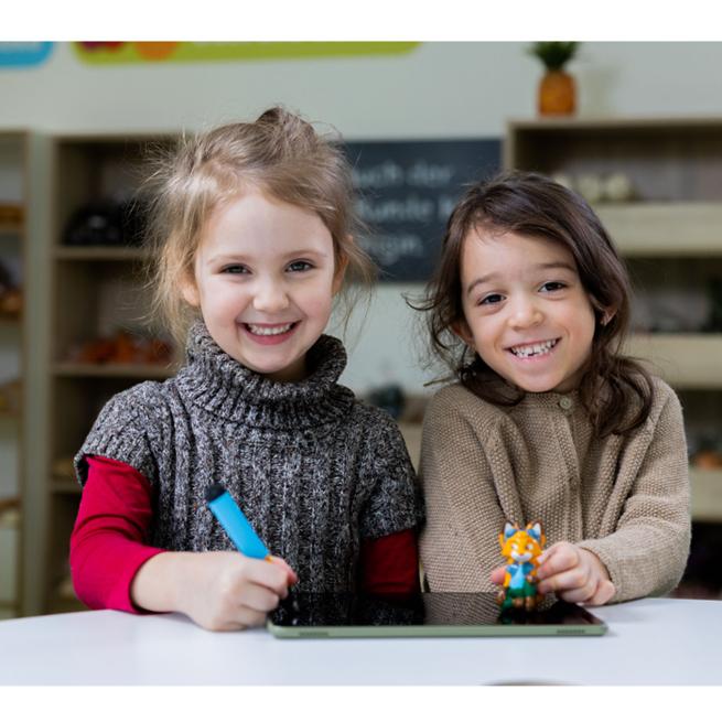 Digitales Lernen zum Anfassen. In der Welt von EDURINO entdecken Kinder mithilfe von Eingabestift, Spielfigur und App, wie spielend leicht das Schreiben- und Lesenlernen funktioniert.