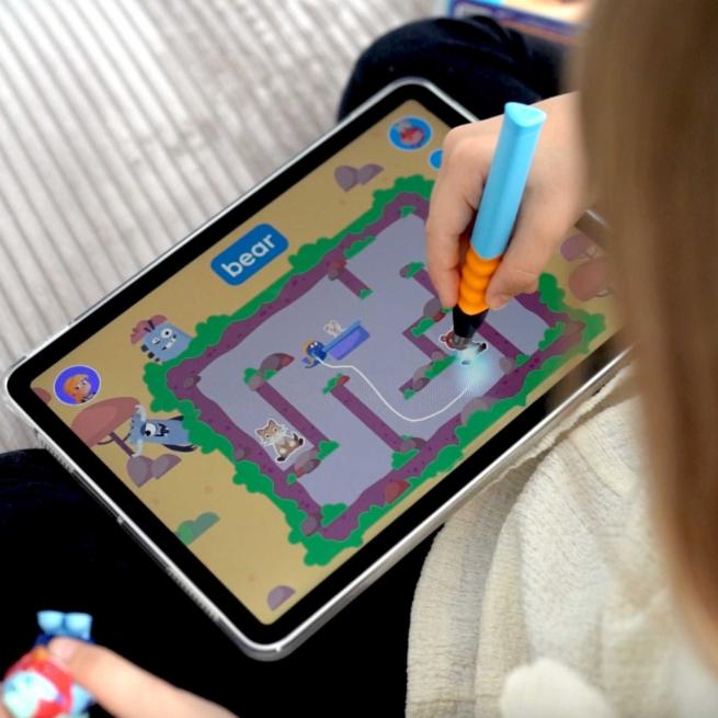 Digitales Lernen zum Anfassen. In der Welt von EDURINO entdecken Kinder mithilfe von Eingabestift, Spielfigur und App, wie spielend leicht das Englischlernen funktioniert.