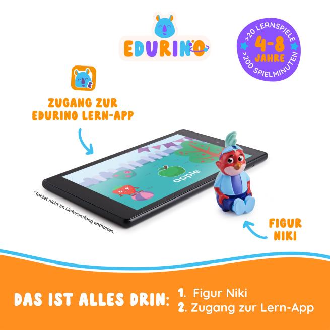 • Spielfigur Niki senden wir an Ihre angegebene Adresse• EDURINO App: einfach kostenlos herunterladen aus dem App Store, Google Playstore und Amazon Appstore