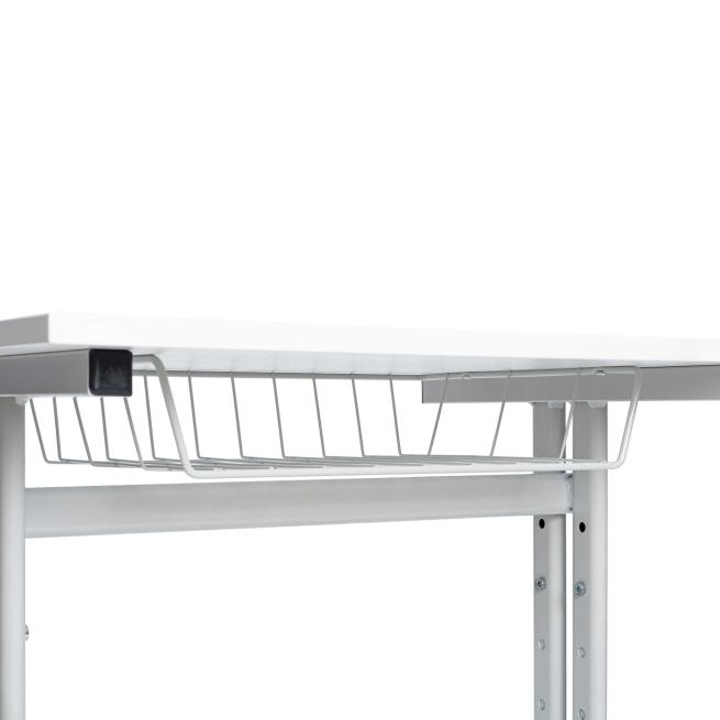 Einer-Schülertisch mit C-Fuß und Drahtkorbablage
