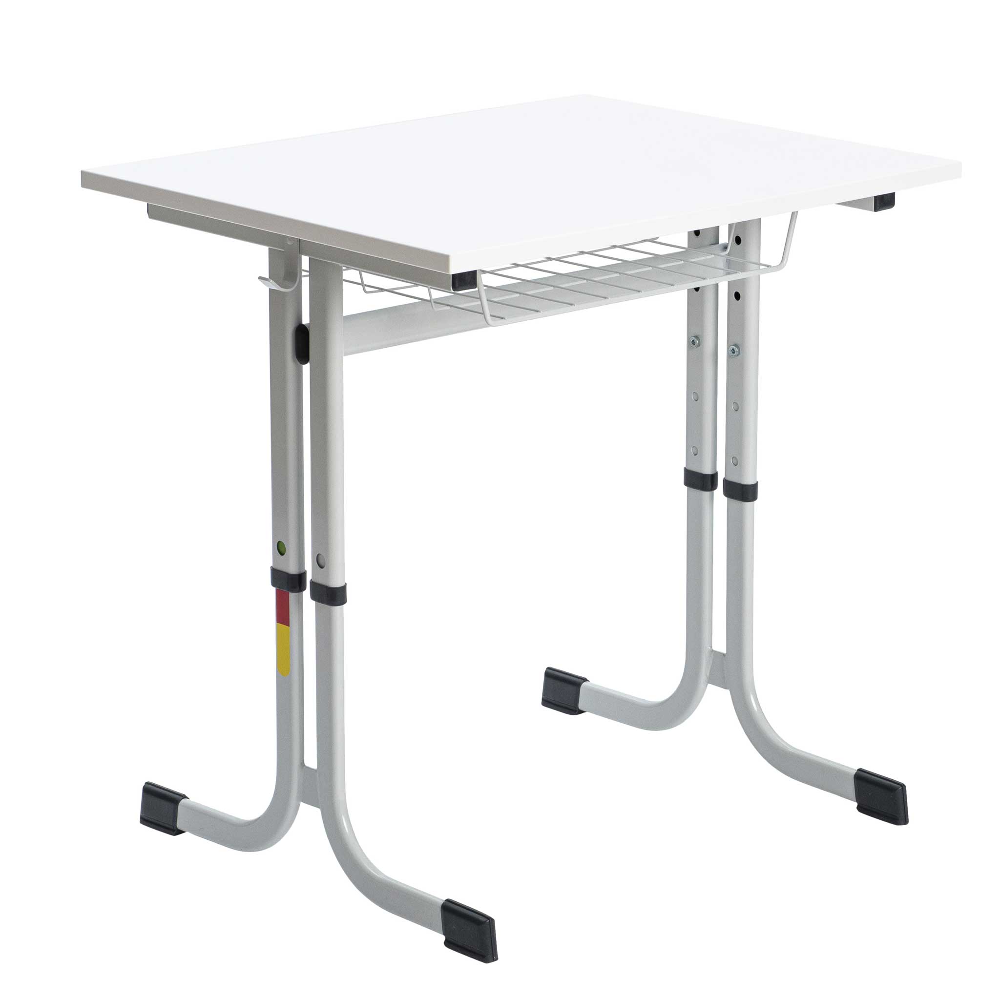 Einer-Schülertisch mit C-Fuß und Drahtkorbablage, höhenverstellbar