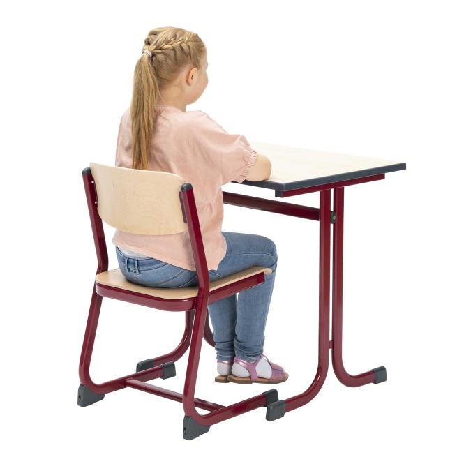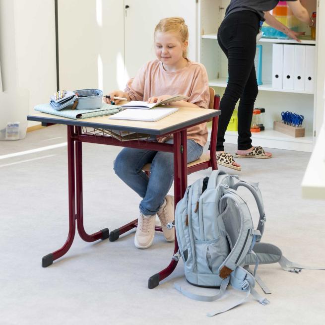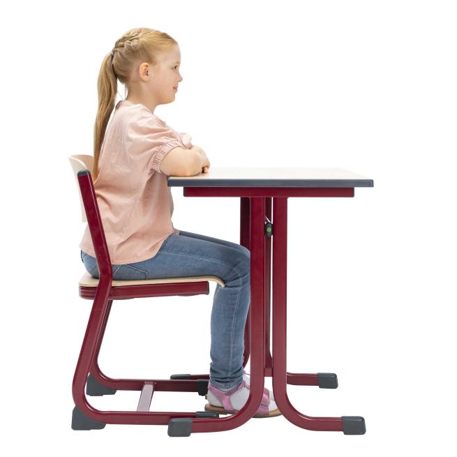 Der praktisch unverwüstliche Schülertisch in stabiler und formschöner Profilform, wahlweise mit Vollkernplatte, PU- oder ABS-Kante. Das Gestell besteht aus pulverbeschichtetem Ovalrohr. Die Rohrenden sind mit recycelbaren, abgerundeten Kunststoffkappen geschlossen. Aus 12 RAL-Farben wählen Sie die Gestellfarbe.