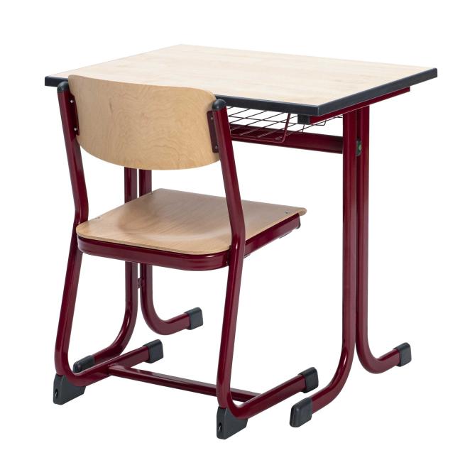 Einer-Schülertisch mit Doppel-C-Fuß und Drahtkorbablage