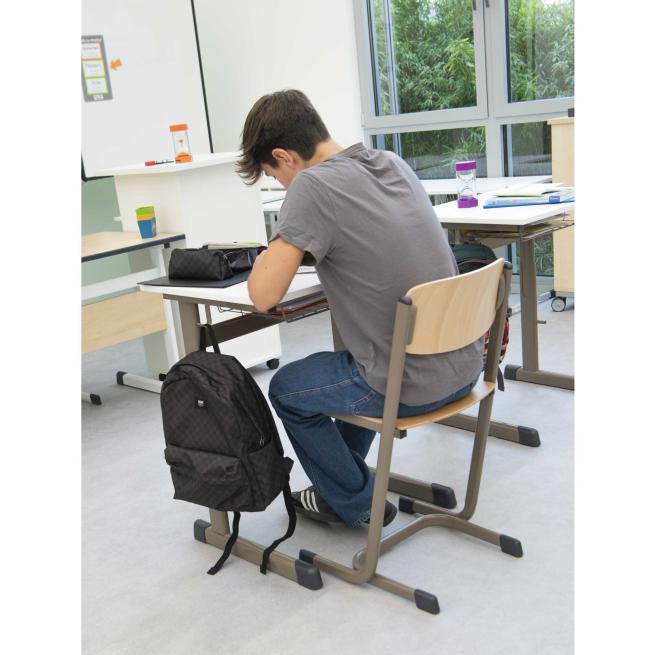 Der praktisch unverwüstliche Einplatztisch-Schülertisch, wahlweise mit Vollkernplatte, PU- oder ABS-Kante. Gestell aus pulverbeschichtetem Ovalrohr. Alle Rohrenden sind mit recyclebaren, abgerundeten Kunststoffkappen geschlossen oder mit Filzgleitern ausgestattet. Das Gestell ist extrem robust. Die Profilstärke ist mit 7,5 cm stärker als bei dem C-Profil, daher kann man auf die Doppelung der Tischbeine verzichten.