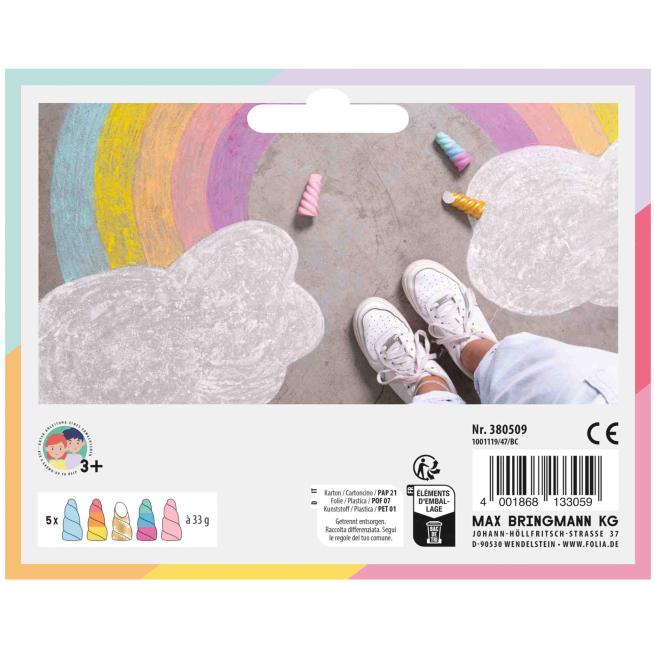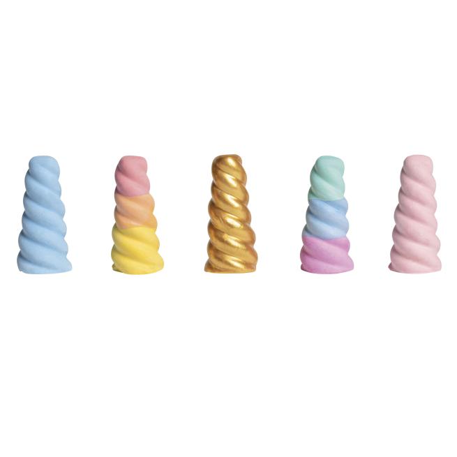 Handliche Kreidestifte in der Form von Einhorn-Hörnern. In markanter Farbauswahl – einfach magisch!