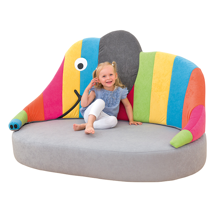 Kinder lieben Kuscheltiere. An diesen großen Elefanten schmiegen sich die Kleinen gerne an. Auf dem gemütlichen Kindersofa lassen sich Ruhepausen wunderbar entspannt genießen. Die Höhe der bequemen Sitzfläche ist perfekt auf die Kleinen abgestimmt. Die hochwertige Verarbeitung sowie der stabile Holzunterbau sorgen für Langlebigkeit im Kita-Alltag.