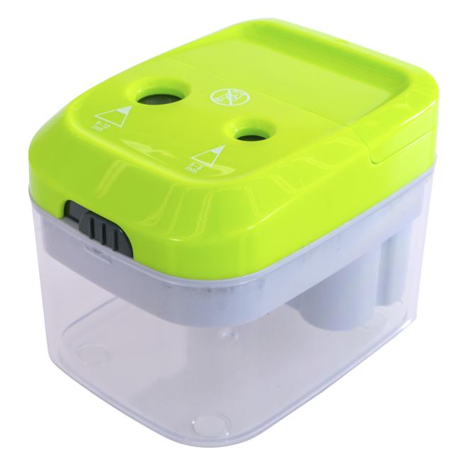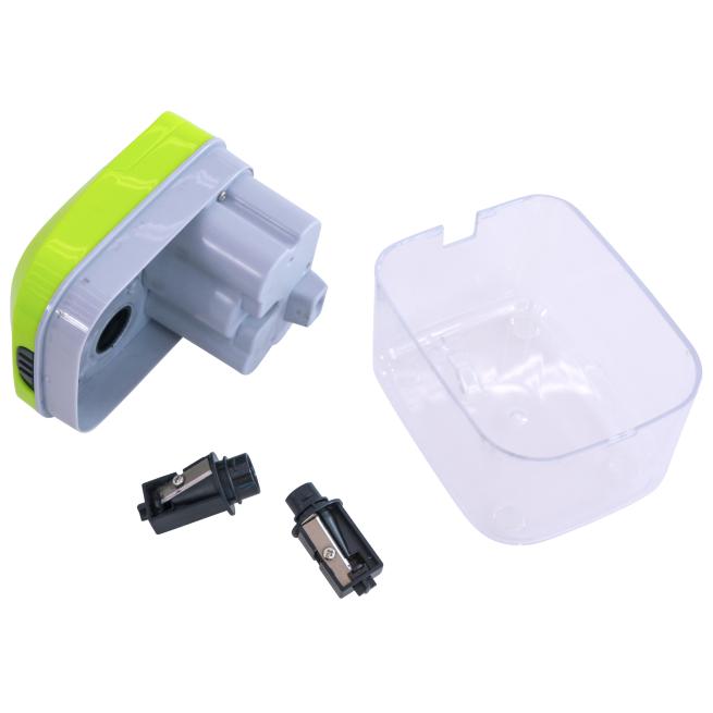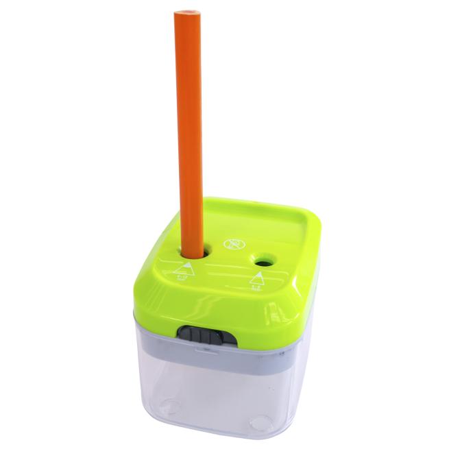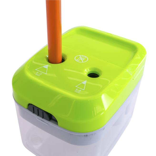 Zwei Spitzer: Für dünne und dicke Farb- und Bleistifte von 6 bis 12 mm, auch für Dreikantstifte. Robustes Kunststoffgehäuse mit transparentem Auffangbehälter. Rutschsicher, dank 4 Gumminoppen am Boden. Batteriebetrieben: 4 AA Mignon Batterien (R6) erforderlich, bitte separat bestellen. Farbe nach Lagervorrat.