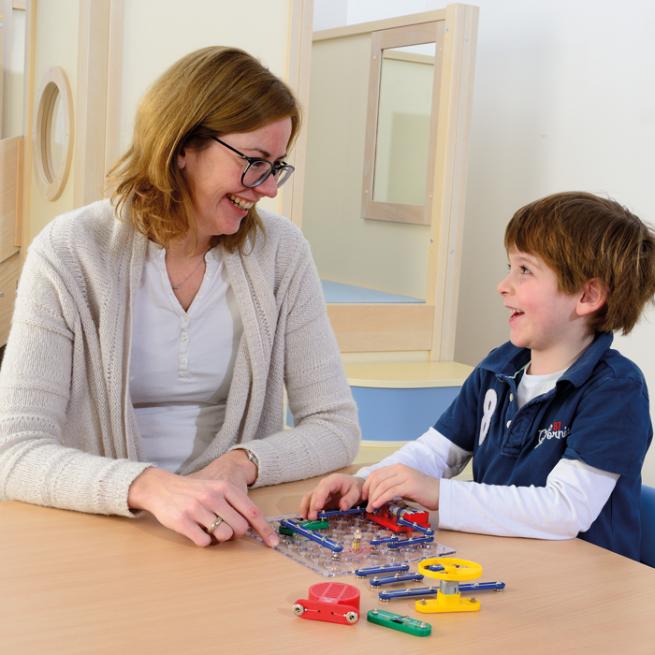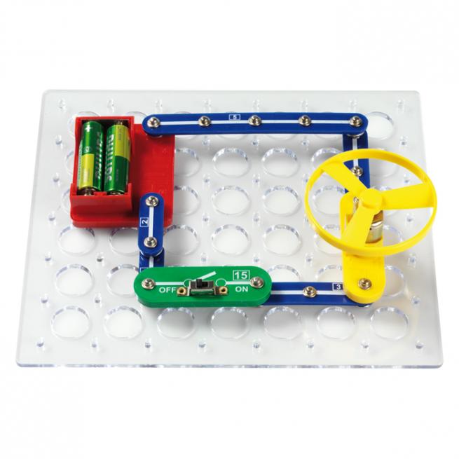 Experimente zu elektrischem Strom und dessen Wirkung faszinieren Kinder. Strom erzeugt Wärme, Licht und Bewegung. Die elektrische Leitfähigkeit verschiedener Stoffe selbst zu erproben ist für Kinder unglaublich spannend. Über 350 Schaltungen sind mit dem Lernbaukasten möglich. Einfache Experimente zu Leitfähigkeit, Bewegung und Licht sind der Einstieg. Anspruchsvollere Experimente sind möglich. Die genialen Druckknopf-Verbinder funktionieren kinderleicht und kommen ohne Kleinteile aus. Die Kinder bauen einfache Stromkreise und erwerben erste Kenntnisse elektronischer Zusammenhänge. Eine umfangreiche Handreichung mit Bauplänen und Anleitungen zu den Experimenten wird mitgeliefert.