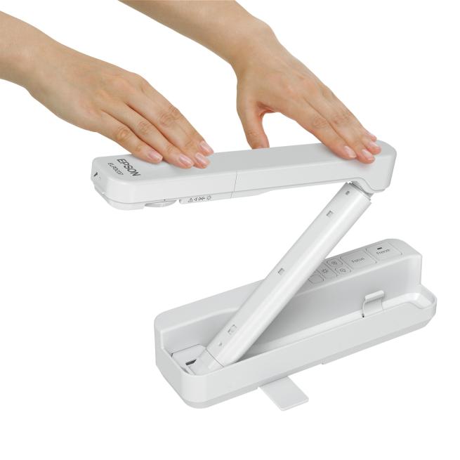 Die Epson ELPDC07-Dokumentenkamera wiegt nur knapp 1 kg und lässt sich im Handumdrehen zu einem kompakten Format zusammenklappen. Sie ist damit handlich, einfach zu transportieren und – bei Verfügbarkeit einer Stromquelle – nahezu überall einsetzbar. Durch die Ausstattung mit LED-Beleuchtung und den umweltfreundlichen Stromverbrauch von nur 2,5 Watt ist hohe Energieeffizienz gewährleistet.