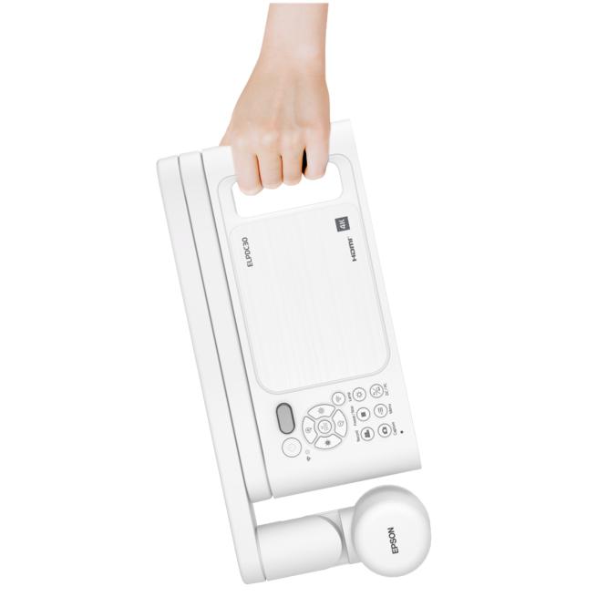 Die Epson ELPDC30 ist spielend leicht über in das Kameragehäuse integrierte und leicht verständliche Gerätetasten sowie die mitgelieferte Fernbedienung zu handhaben. Wählen Sie zwischen zahlreichen und durch einfachen Tastendruck ansteuerbaren, praktischen Funktionen, wie sofortigem Ein- und Ausschalten, Foto-Auslöser, Videoaufnahme, Freeze-Funktion, Lautstärkeregelung, Zoom, Bildauflösung oder Hell-/Dunkel-Anpassung. Nutzen Sie die unterschiedlichen Kamera-Einstellungen, z. B. Weitwinkel sowie Makro- oder Mikroskop-Modus, um stets optimale Ergebnisse zu erzielen. Auch die LED-Beleuchtung, der Autofokus oder die WLAN- bzw. USB-Verbindung lassen sich auf Knopfdruck aktivieren oder deaktivieren.