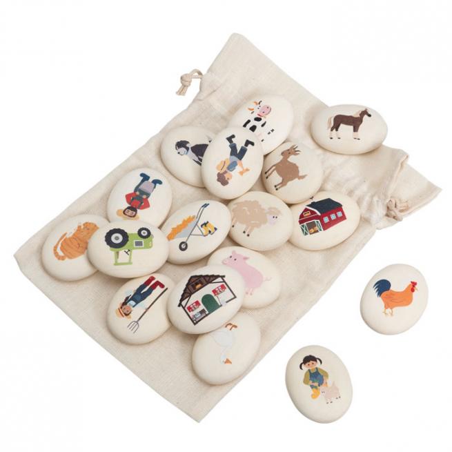 Erzählkiesel, 16 Stück Bauernhof