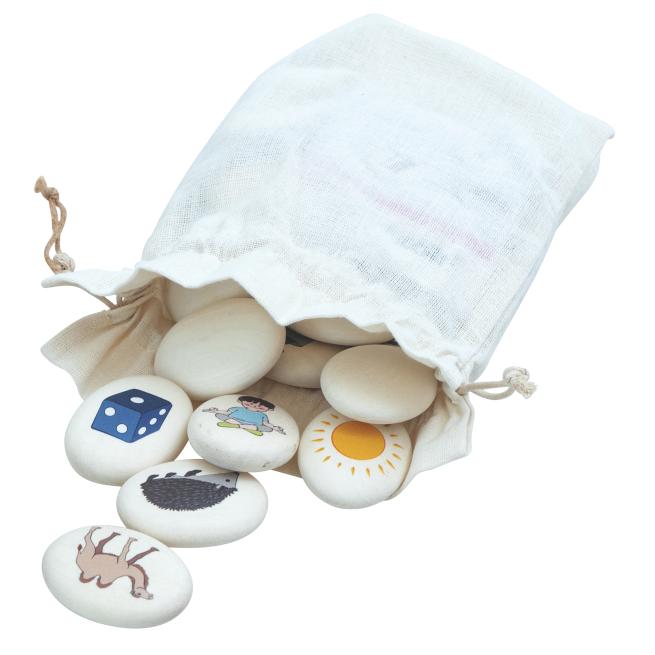 Jedes Bild auf den Kieseln symbolisiert einen Buchstaben des Alphabets. Indem Sie mit Ihren Kindern die richtige Reihenfolge legen, machen sie sich mit der Abfolge vertraut. Gedächtnisspiele nach dem Ich-packe-meinen-Koffer-Prinzip fordern und fördern den kindlichen Grips. Sortieren und klassifizieren lernen die Kinder, indem sie per Ausschlussverfahren erkennen, welcher Kiesel nicht in eine bestimmte Reihe passt.