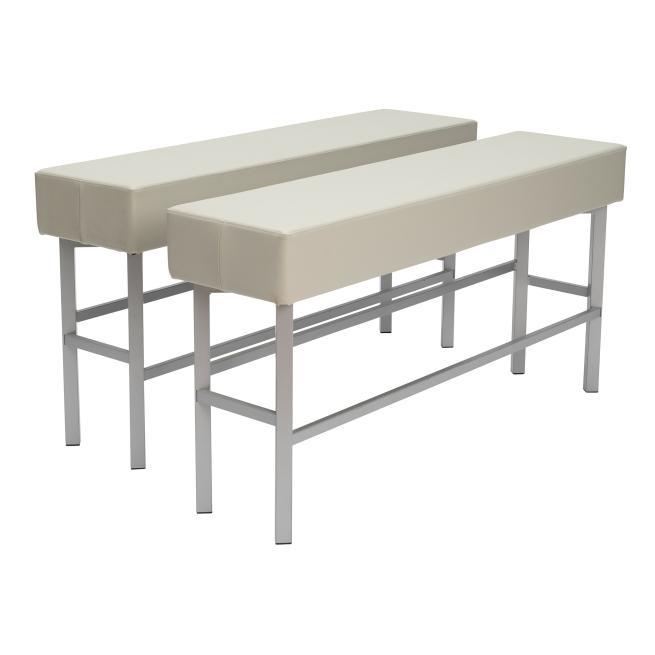 Bezogen sind die Sitzmöbel mit Kunstleder. Es ist besonders hygienisch, da Sie es einfach feucht abwischen. Zudem ist es schwer entflammbar nach DIN EN 1021.